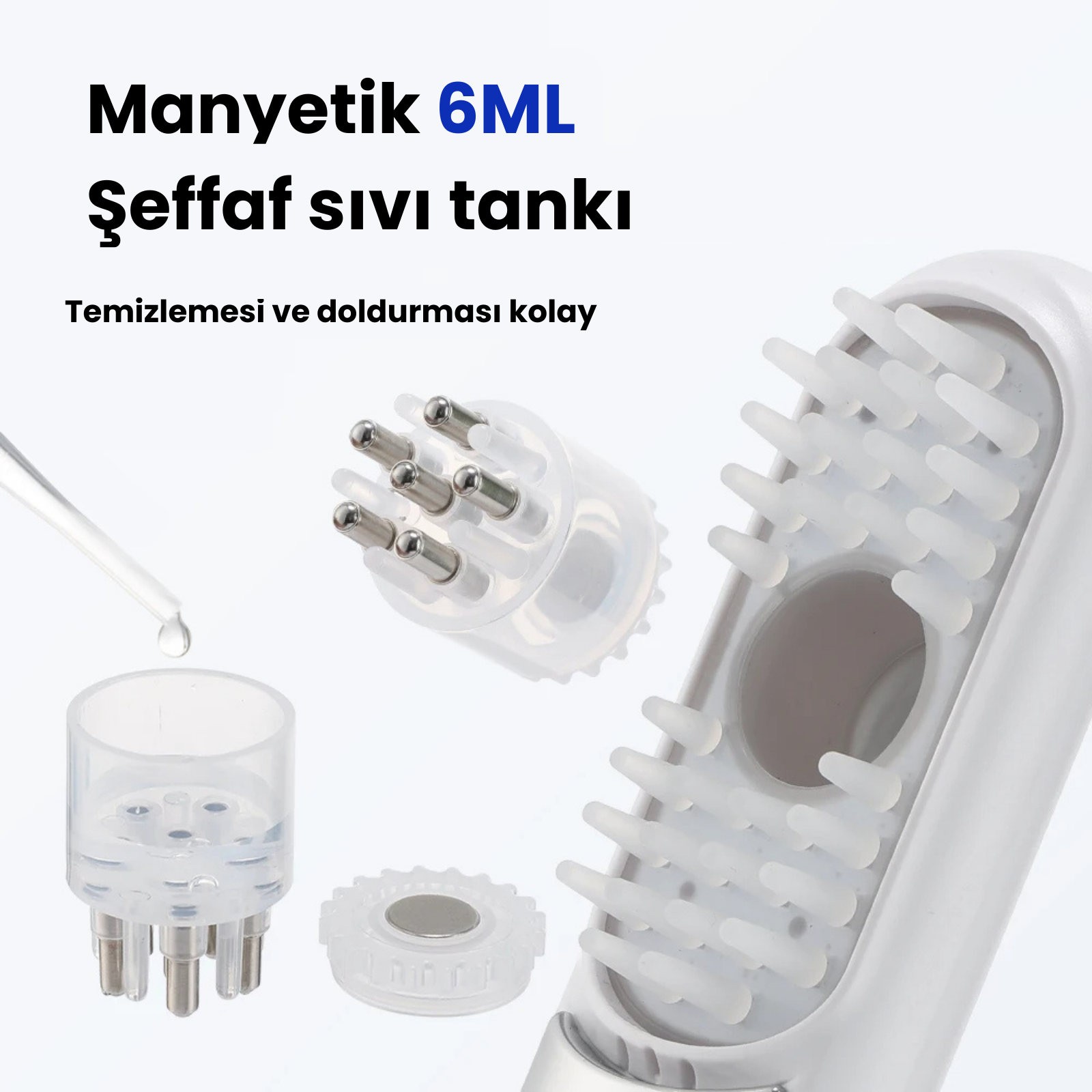 Argan yağı, biberiye yağı, minoksidil veya saç serumu gibi çoğu saç bakım ürününü kullanabilirsiniz. Cihaz, sıvıyı doğrudan saç köklerine iletir.